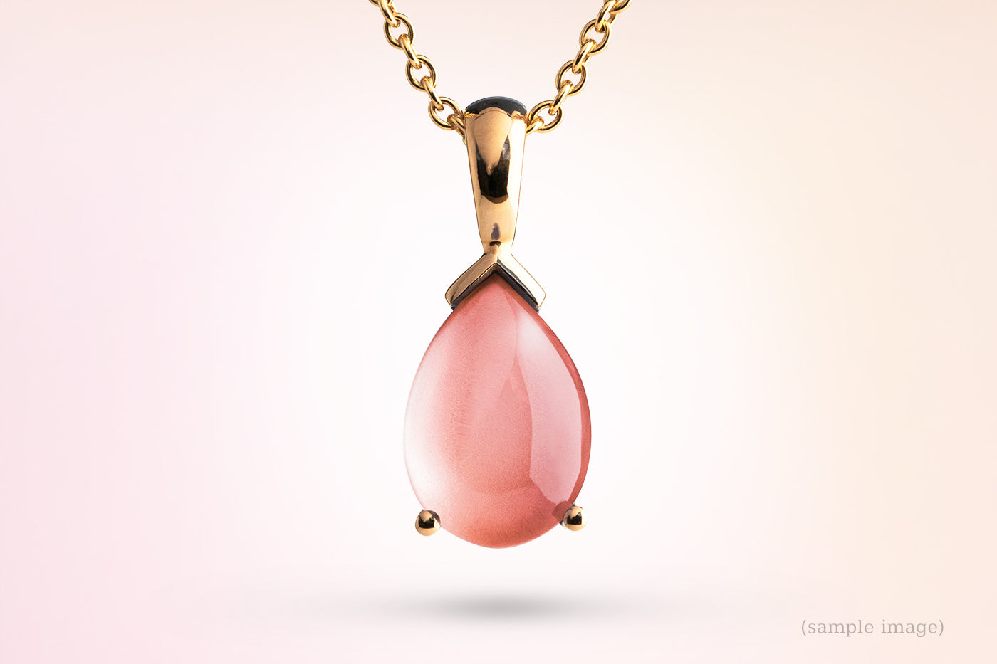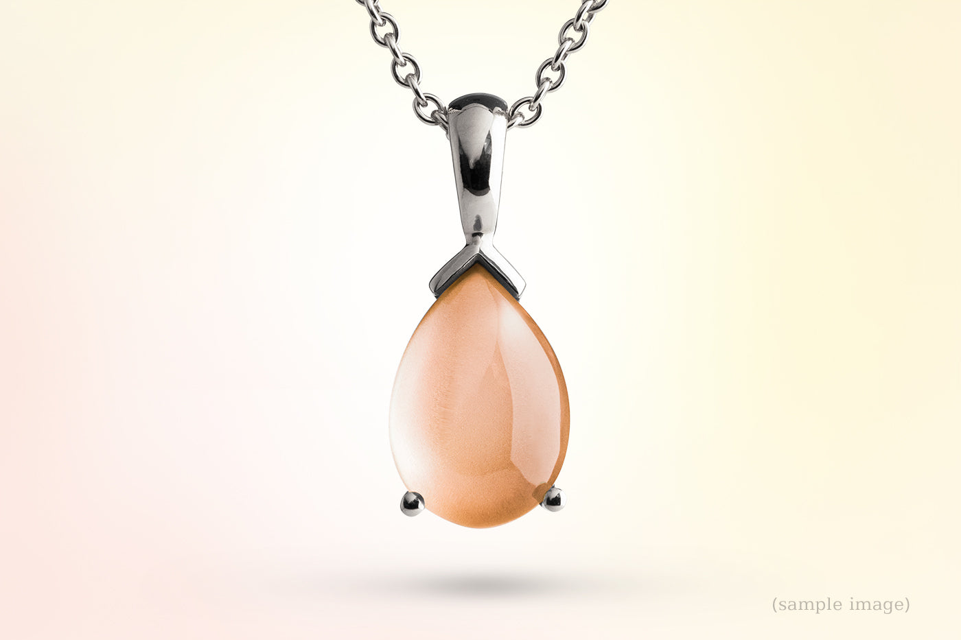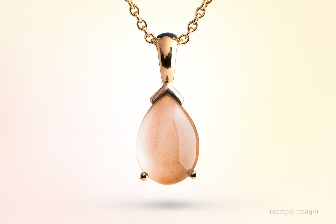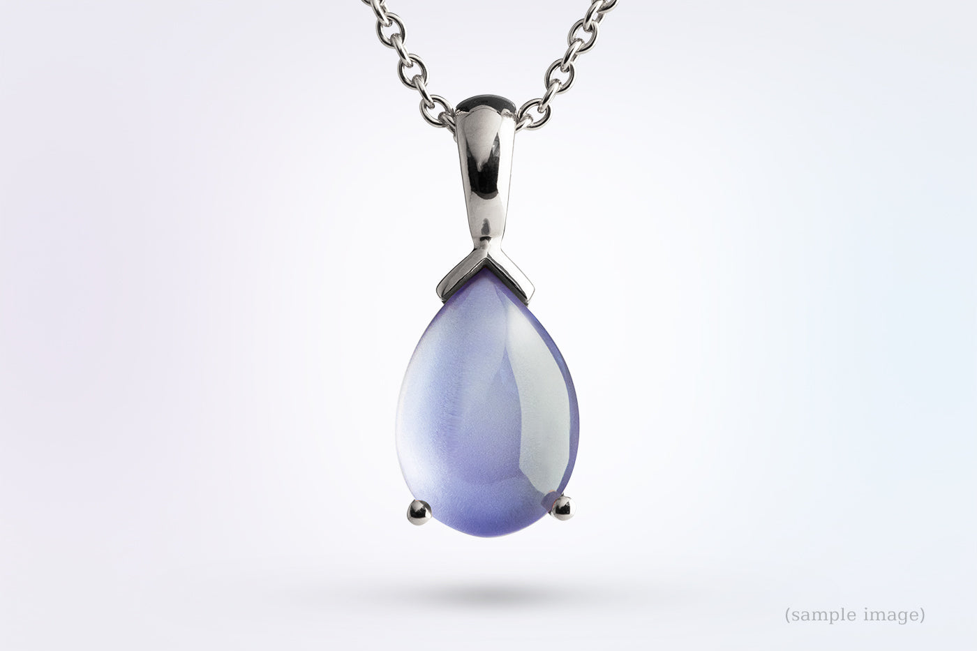 Anhänger, Krappenfassung. Ein Cabochon als Tropfen hat eine sehr emotionale Wirkung. Ein Erinnerungsstein aus Asche oder Haar trägt viele Geschichten in sich.