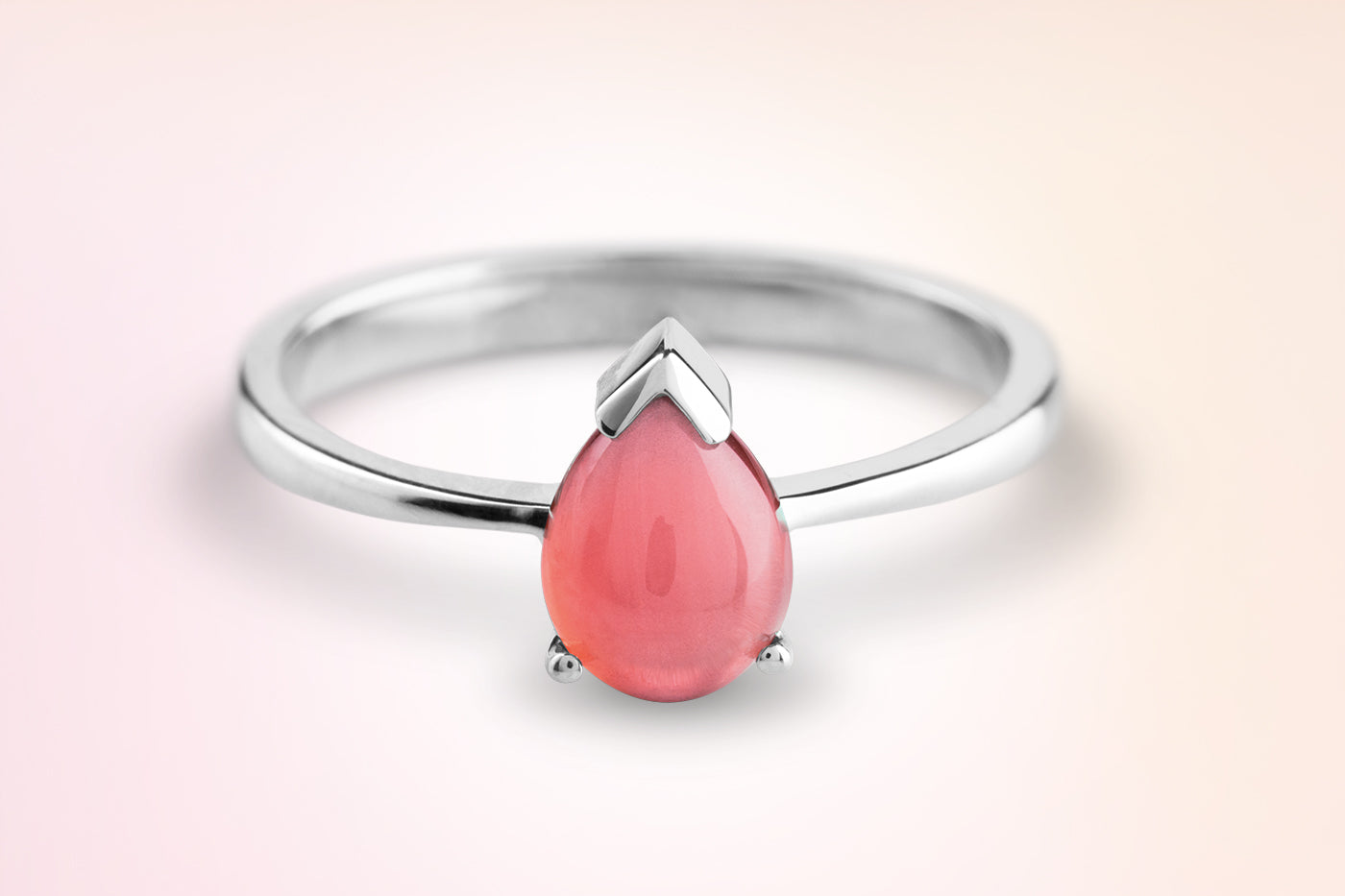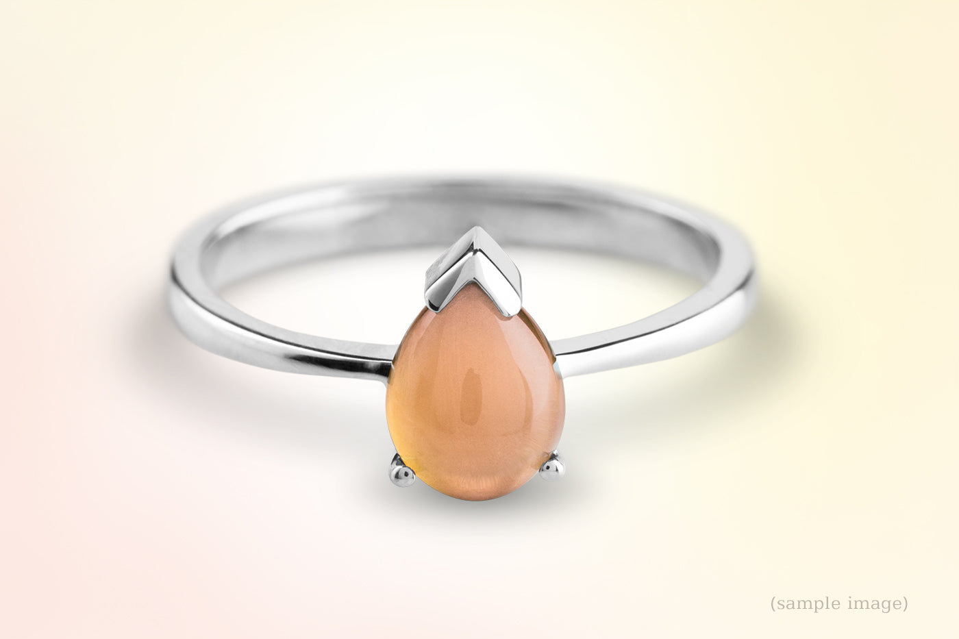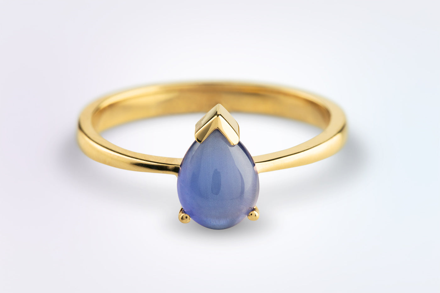 Ladies' ring, prong setting. A symbol of the tear as a symbol of remembrance. A drop-shaped cabochon conveys the stories of eternal love.