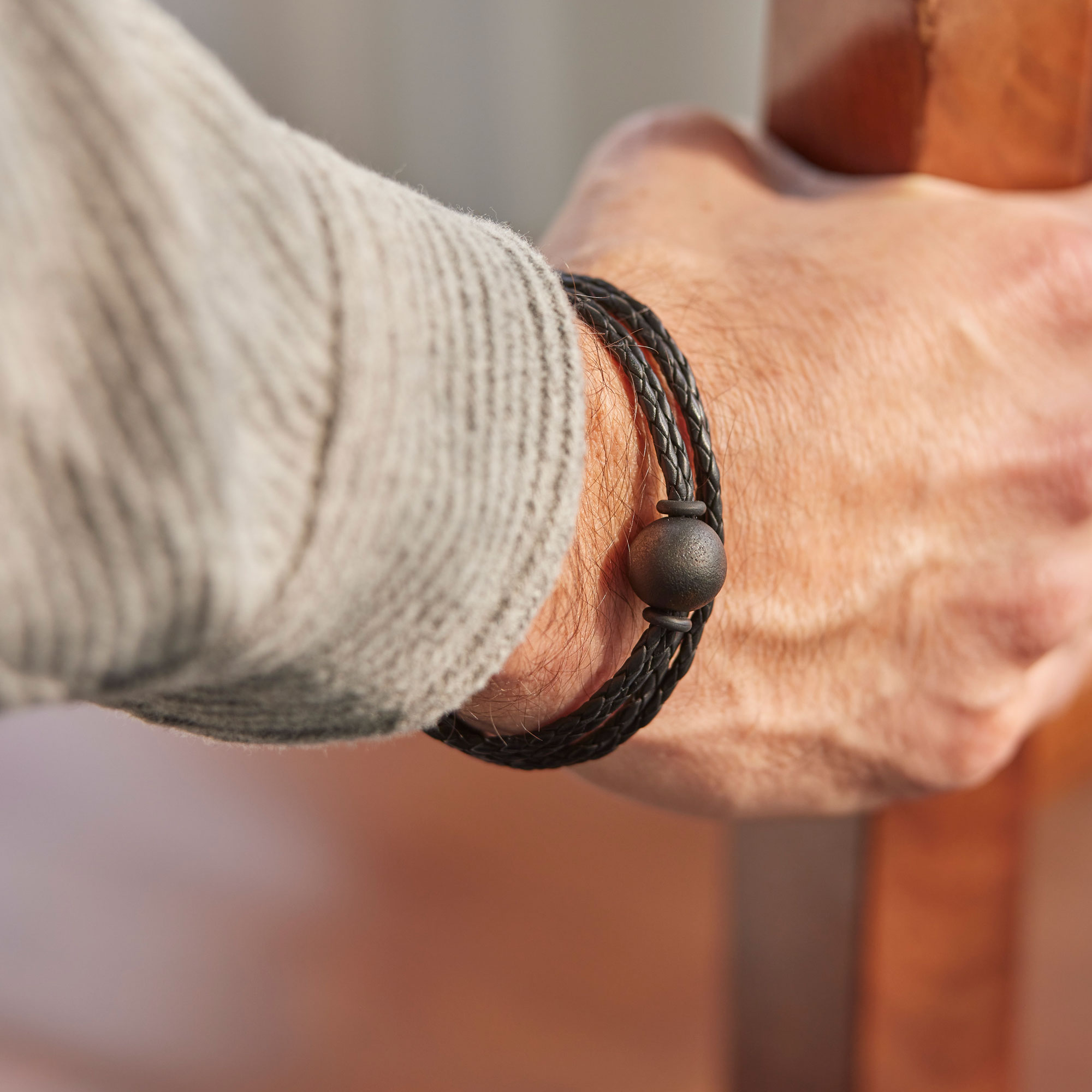 Schwarze Perle aus robuster Keramik, Lederarmband, hochwertige Schatulle