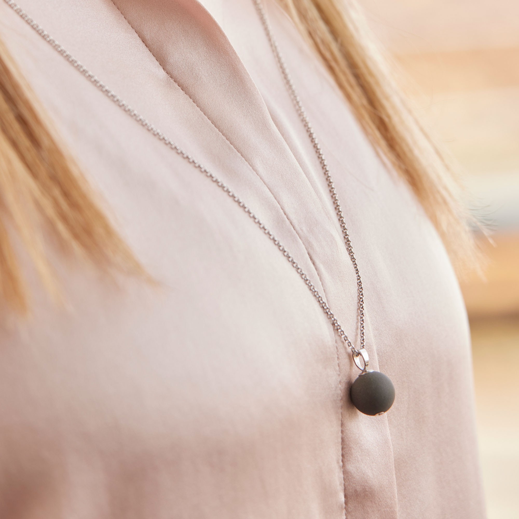 Schwarze Perle aus robuster Keramik, Kette 80 cm Silber rhodiniert, hochwertige Schatulle