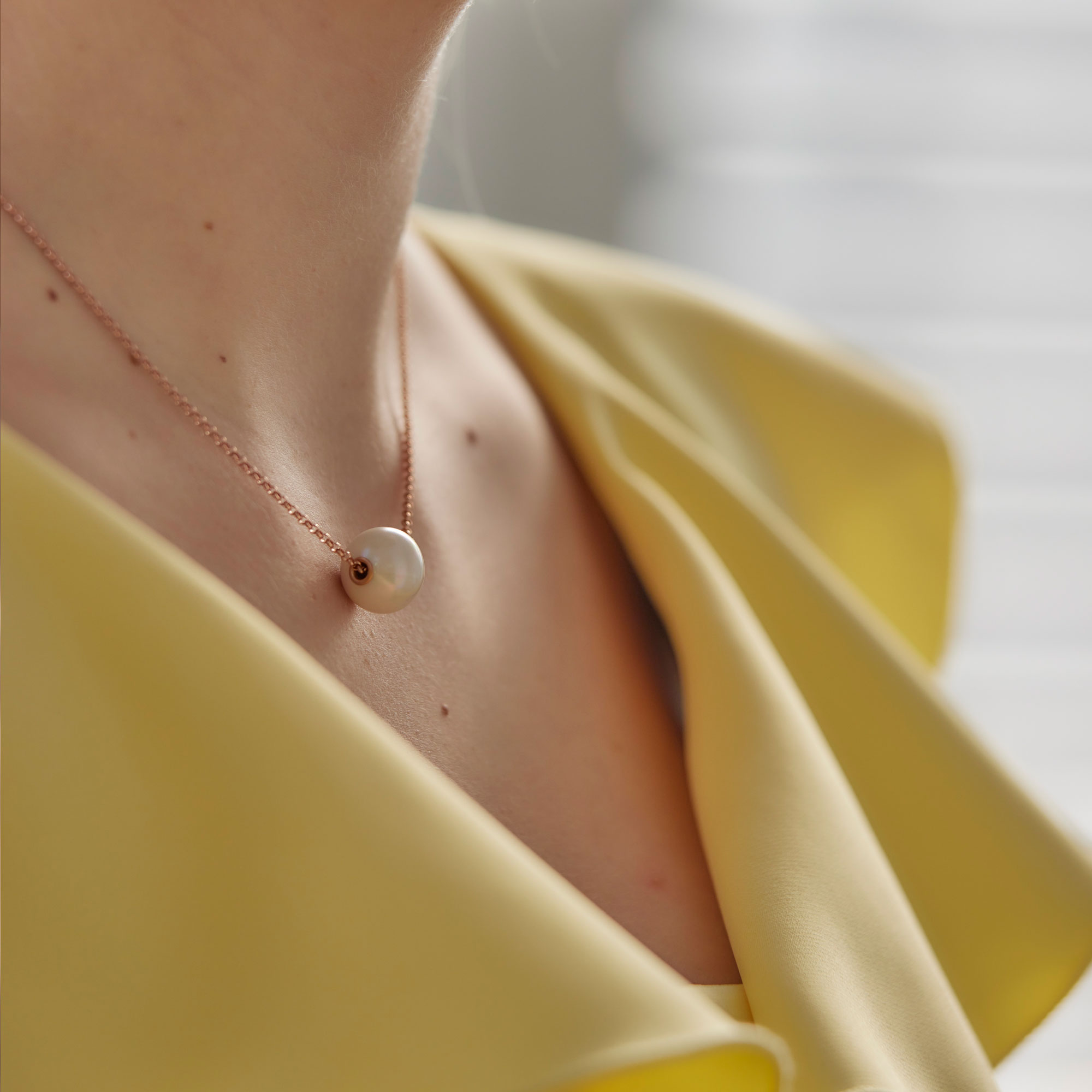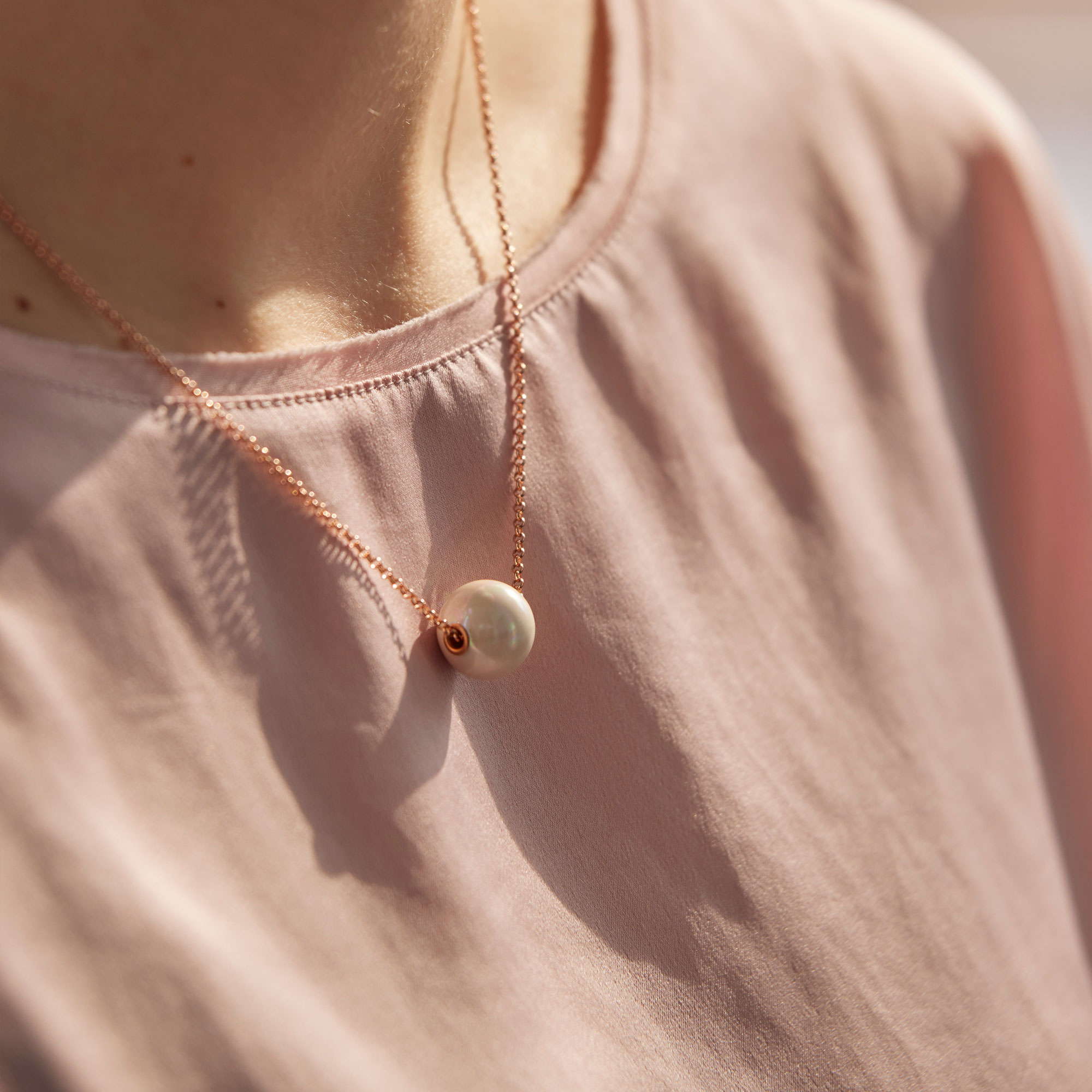 Weiße Perle aus robuster Keramik, Silber Kette 45 cm rosé-gold vergoldet, hochwertige Schatulle
