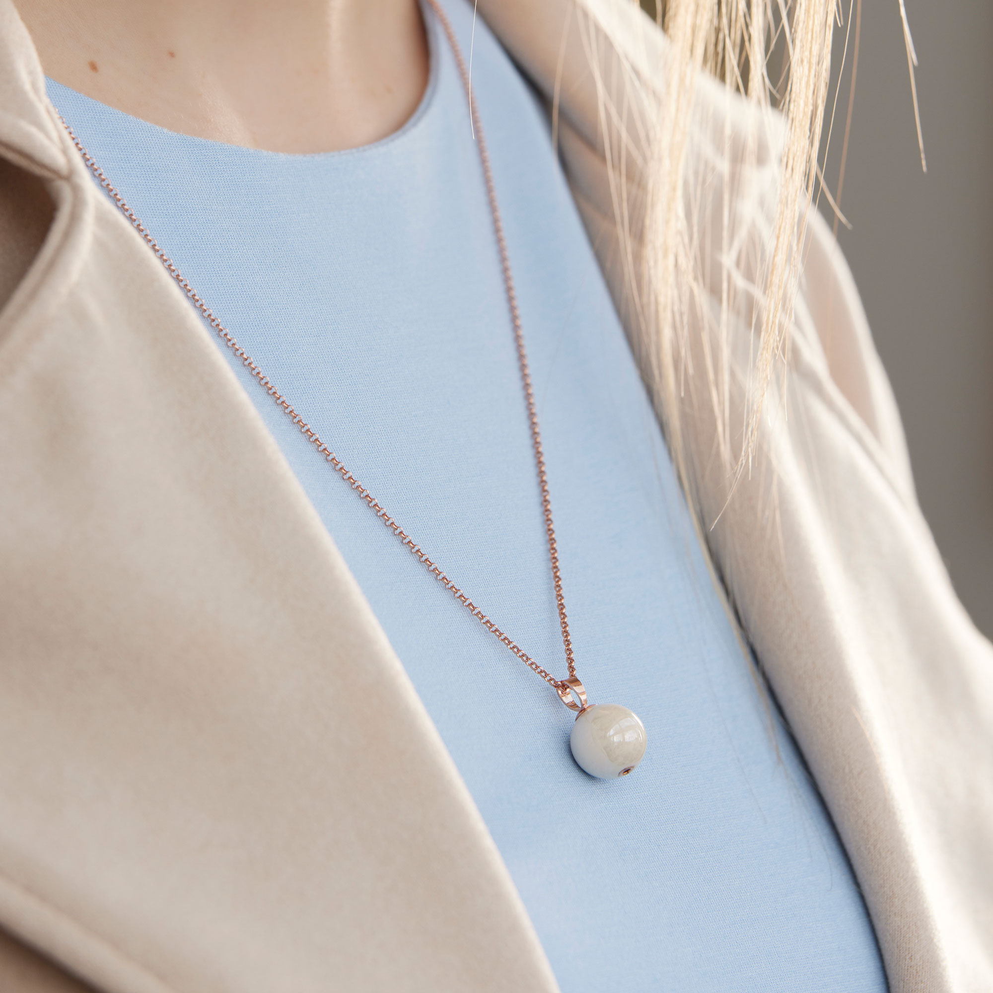 Weiße Perle aus robuster Keramik, Silber Kette 80 cm rosé-gold vergoldet, hochwertige Schatulle